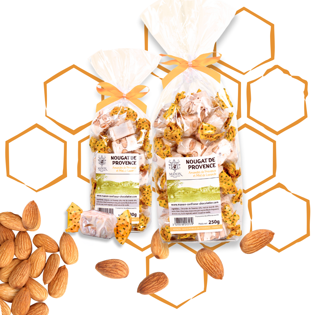 Ce Nougat, de Fabrication artisanale, est aux amandes blanchies, [...]