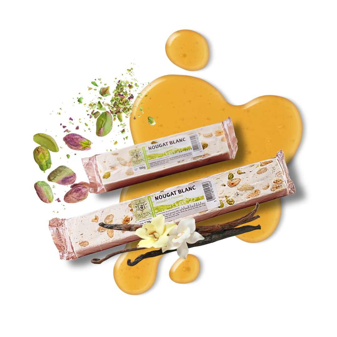 Ce Nougat, de Fabrication artisanale, est aux amandes blanchies, [...]