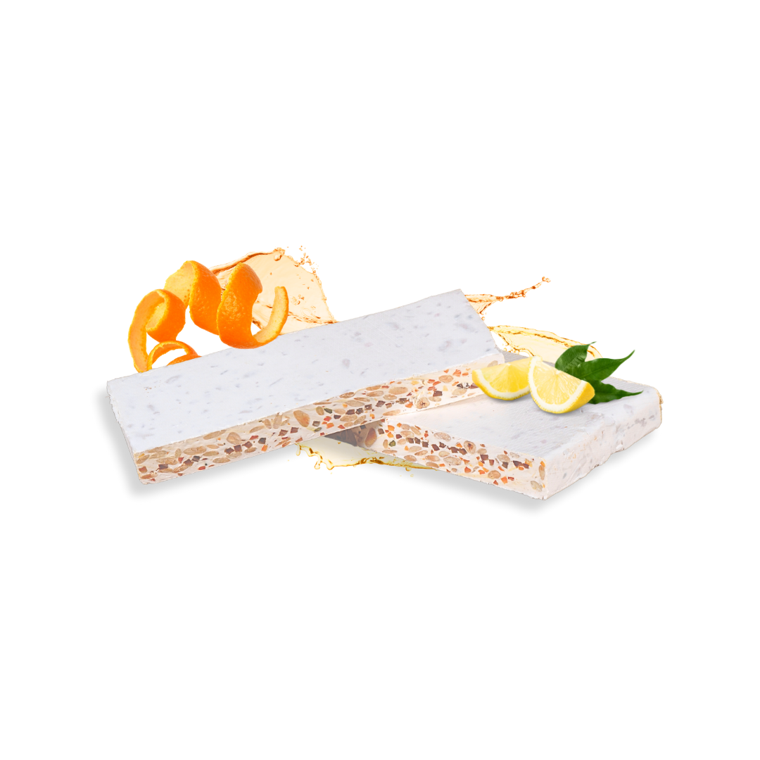 Voir l'image agrandie Pain nougat blanc MANON orange/citron Nougat aux écorces et lamelles d’orange et citron confites, amandes blanchies, miel, pistaches, vanille naturelle, pain azyme. Réf. 16 804 – Nougat Blanc Écorces d’Orange & Citron Confites en Pain – 4,5 kg Nous contacter nicolas2025-10-16T17:32:50+02:00