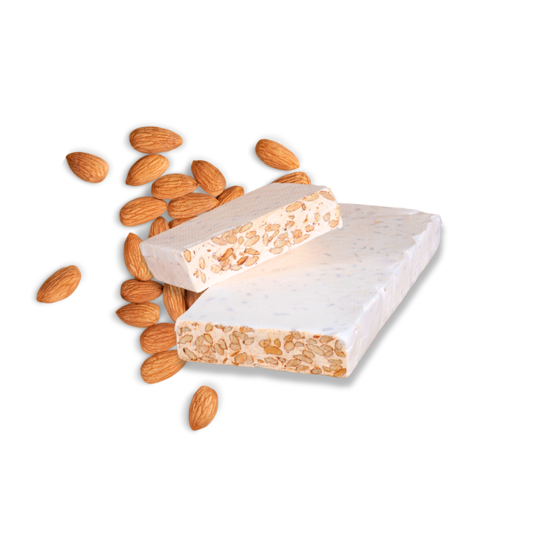 Nougat de fabrication artisanale avec des produits naturels, sans conservateur, sans additif, ni colorant et arômes artificiels.